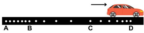 Jika pola tetesan oli seperti tampak pada gambar tersebut, maka gerak mobil dalam bentuk grafik kecepatan terhadap waktu dapat ditunjukkan oleh ….