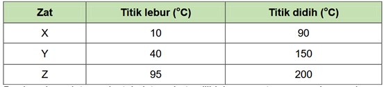 3. Pada suhu 85 oC, zat X berwujud cair dan zat Z berwujud padat.
