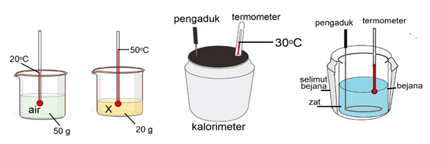 Setelah diaduk termometer pada kalorimeter menunjukkan suhu keseimbangan. Jika